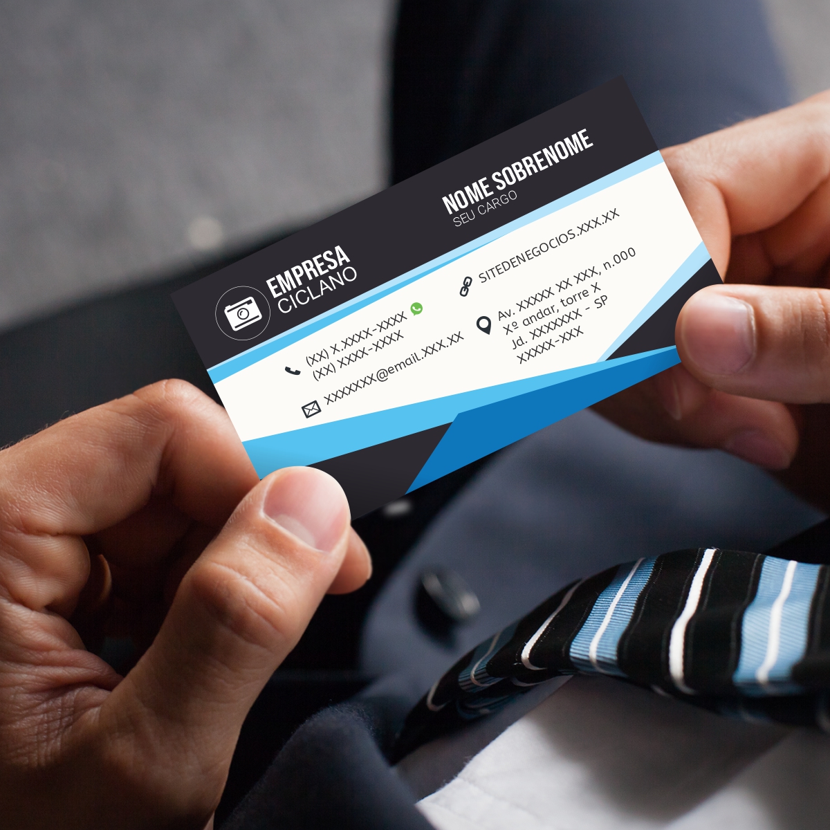 O modelo Executive foi criado especialmente para MEIs, autônomos, prestadores de serviço e profissionais liberais, com um visual neutro e profissional que se adapta a diferentes segmentos.